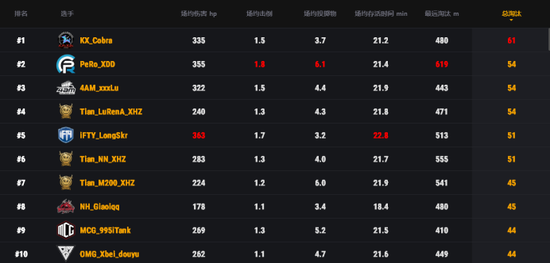 总淘汰榜——Cobra61个淘汰一骑绝尘,XDD紧随其后